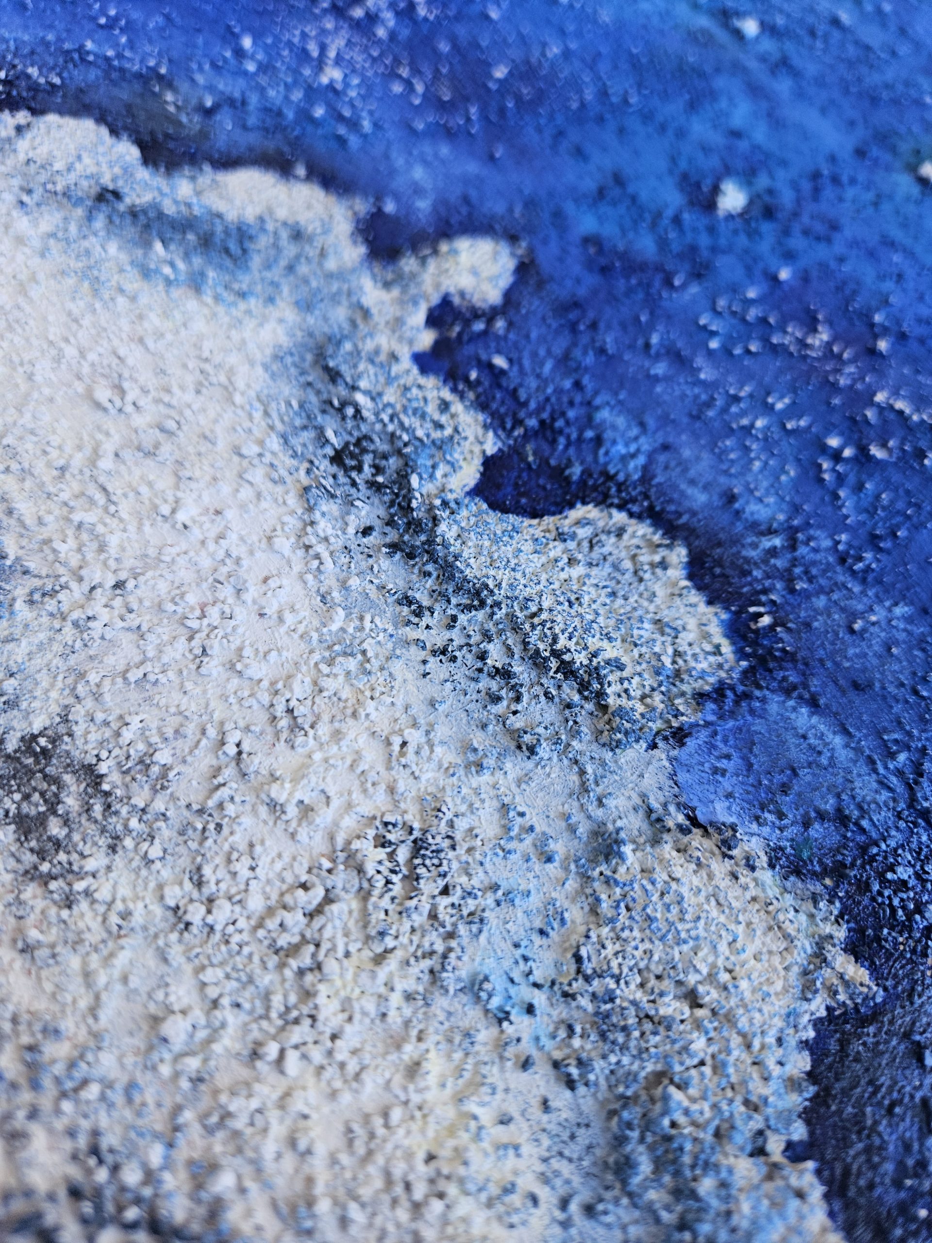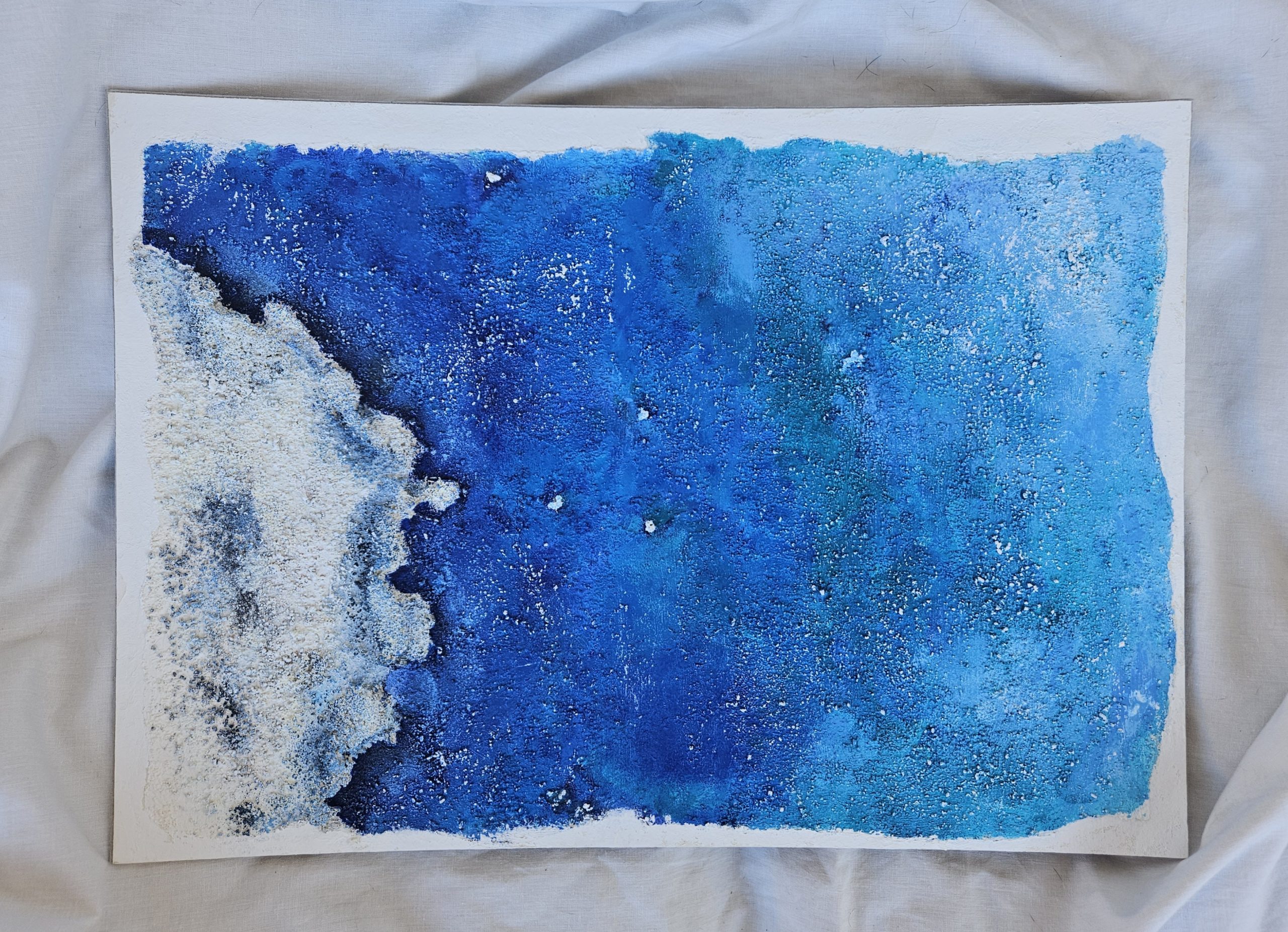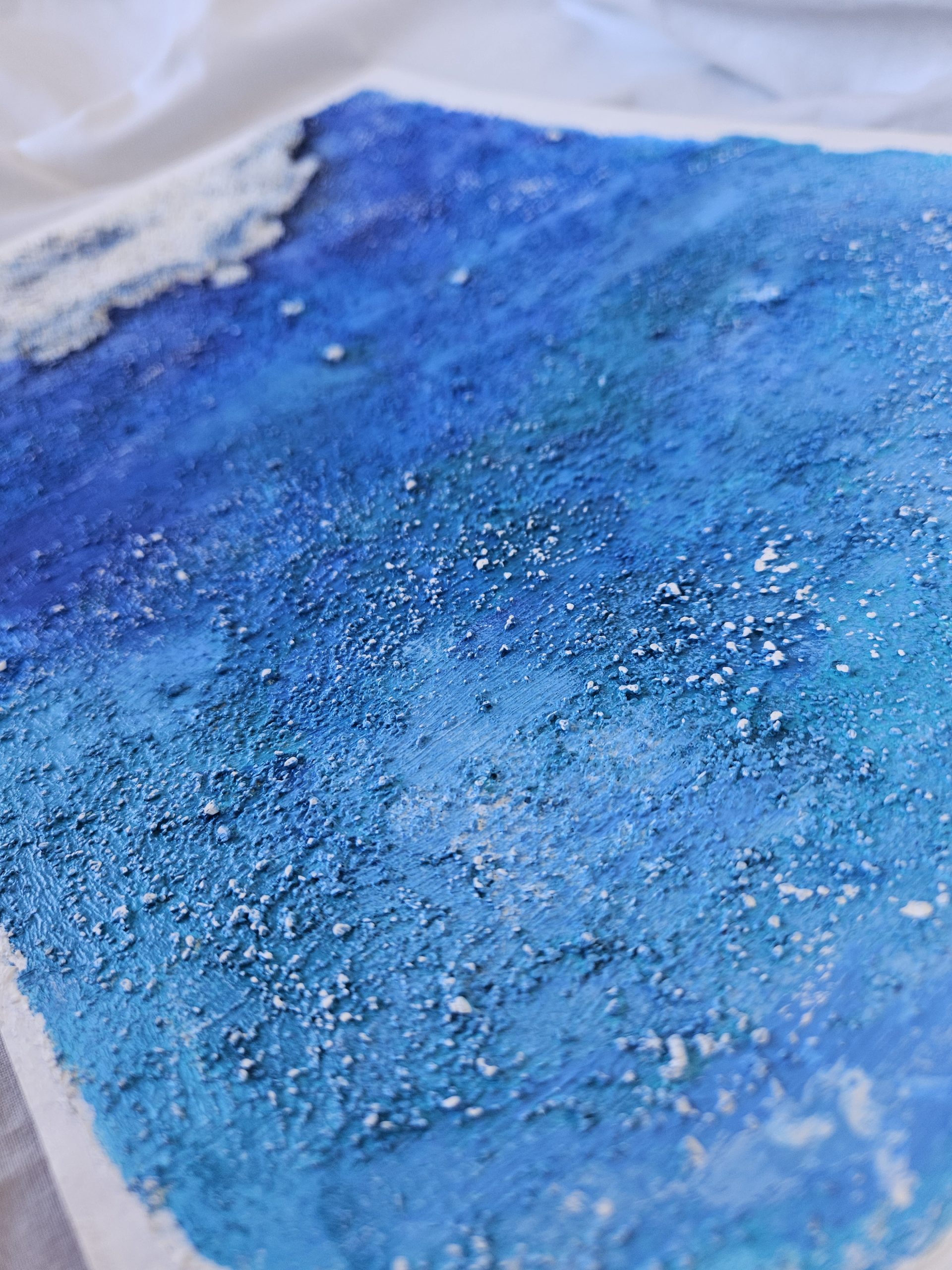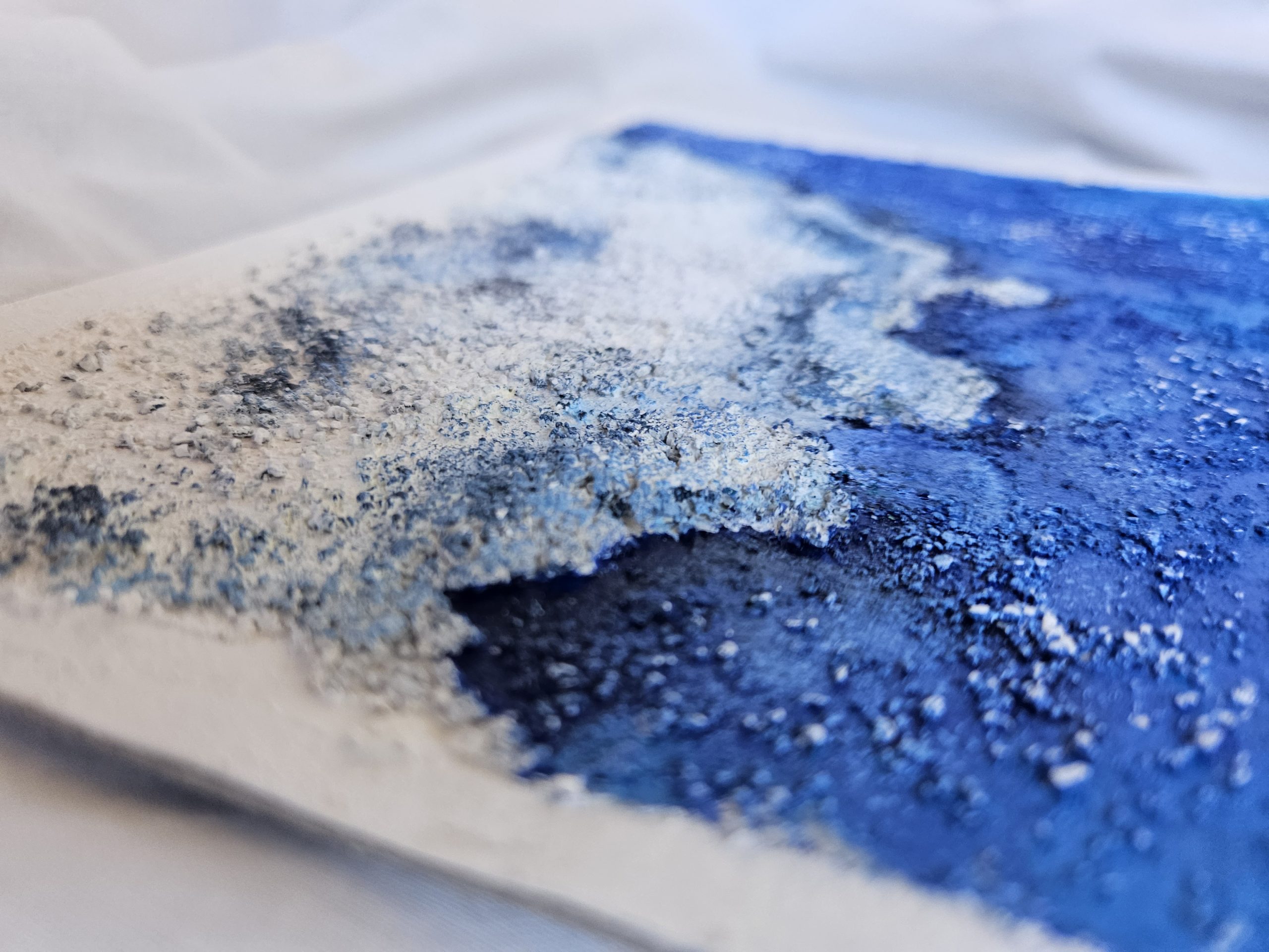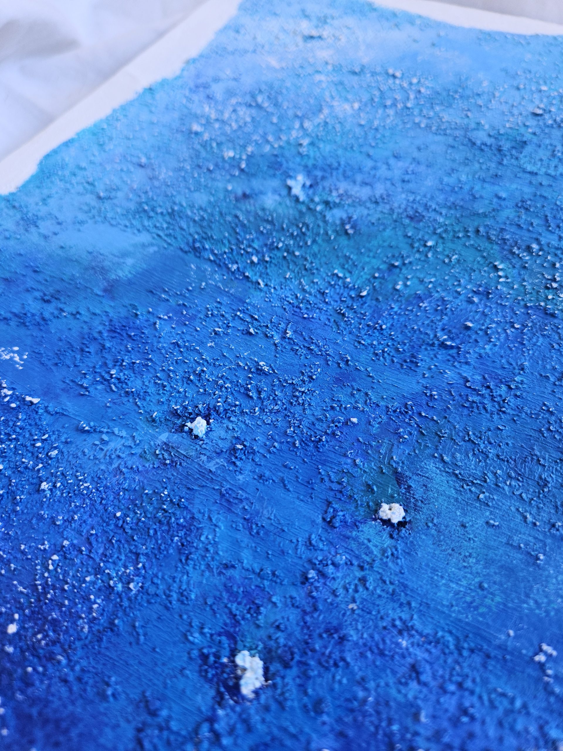 Acrílico y textura de arena sobre lámina de papel y rígido de cartón.