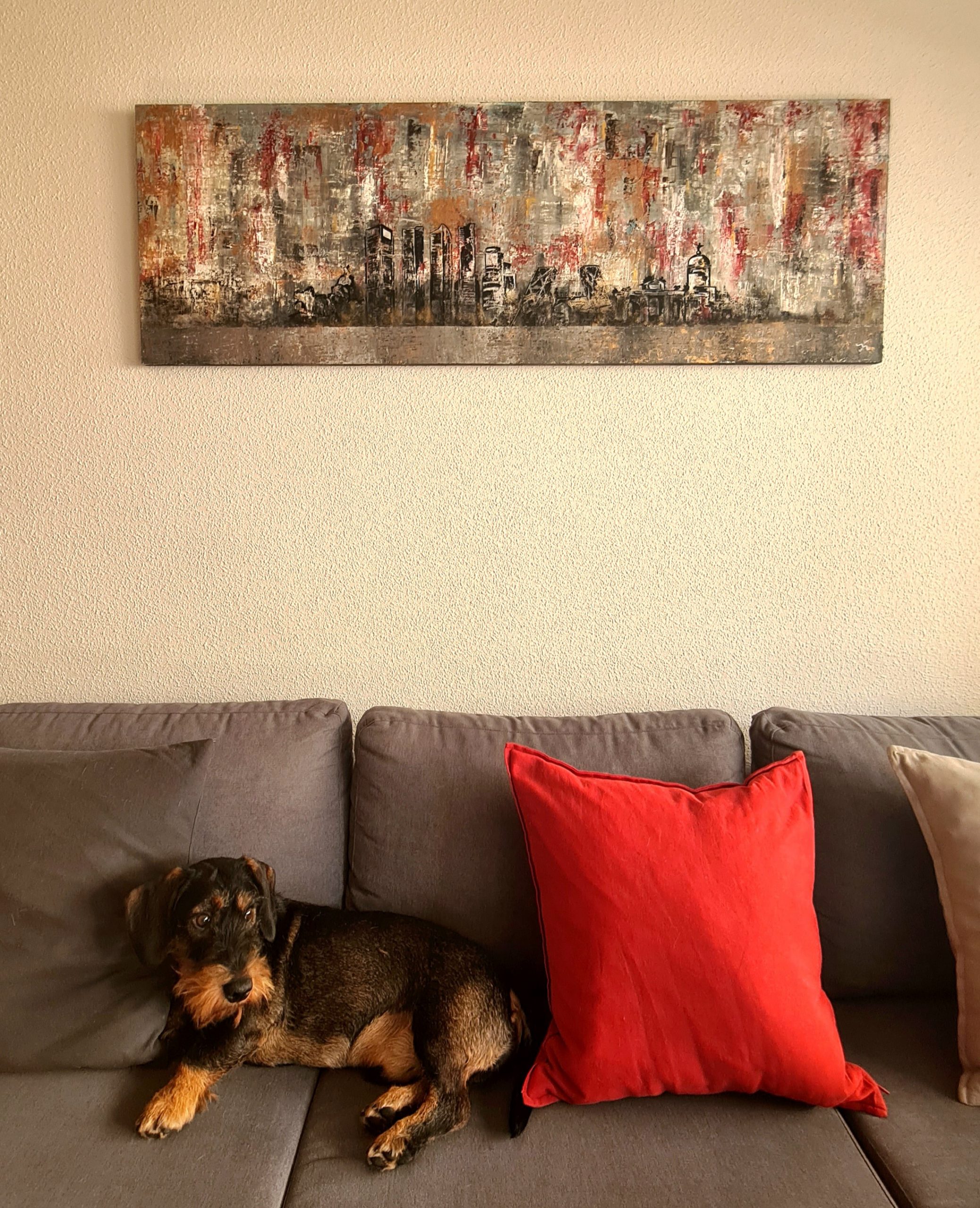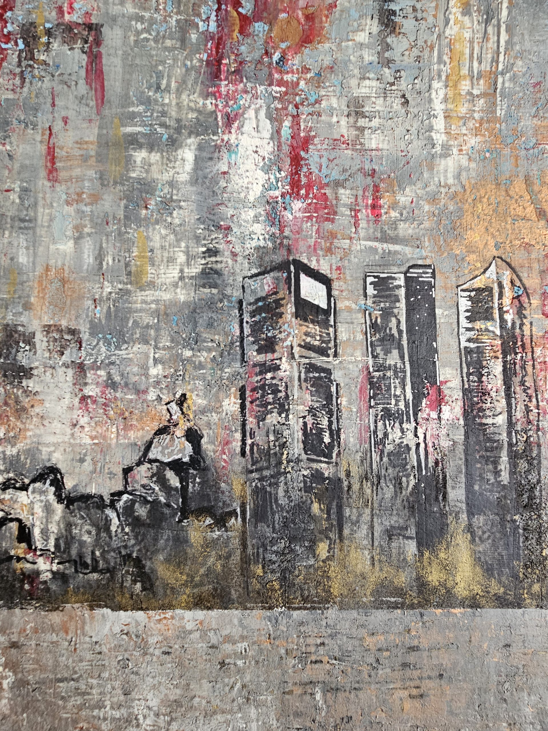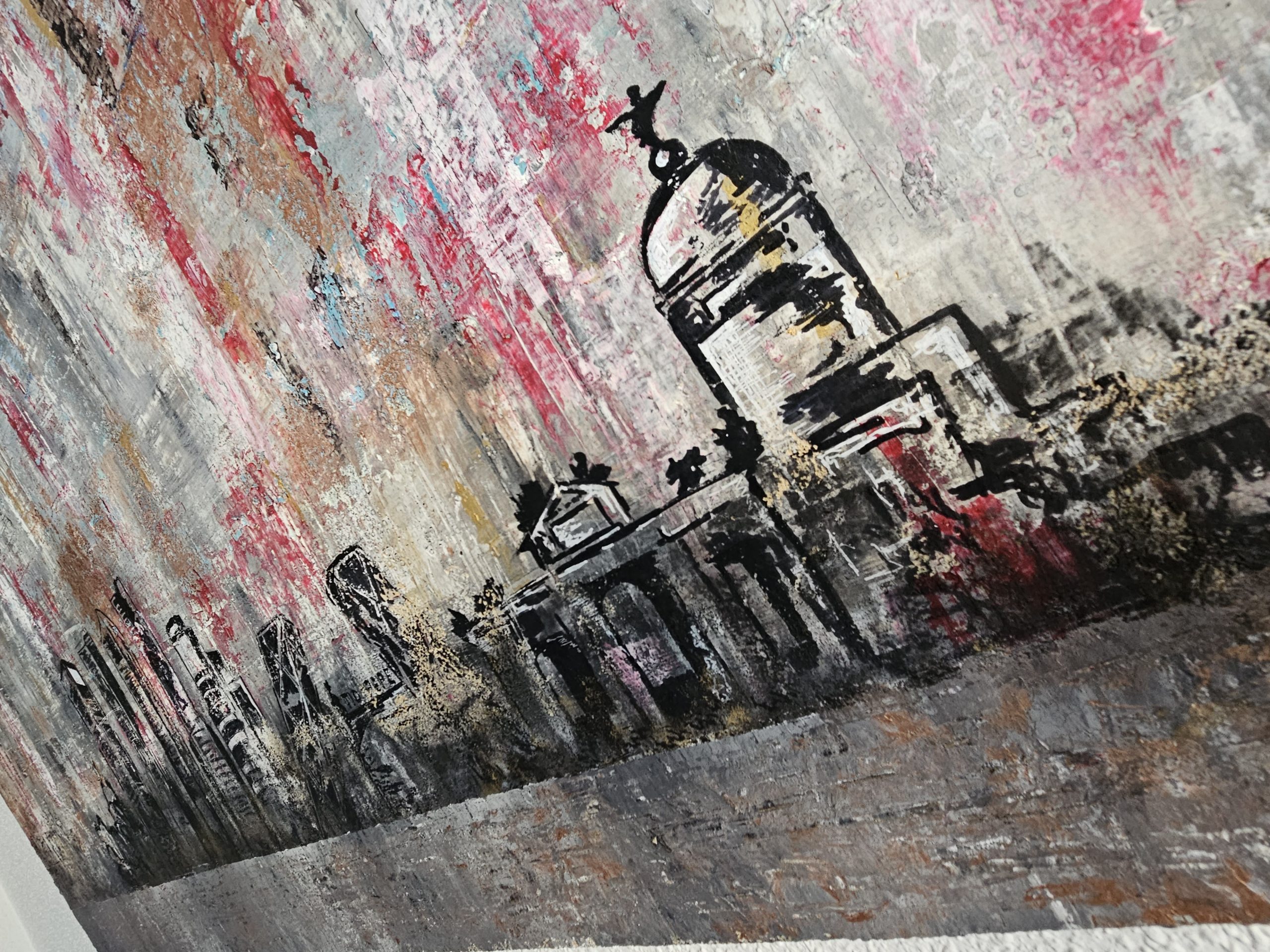 Imagen clásica pero muy original del skyline de Madrid. Los edificios míticos de esta ciudad se vislumbran entre las originales texturas y un fondo de colores que no deja indiferente.